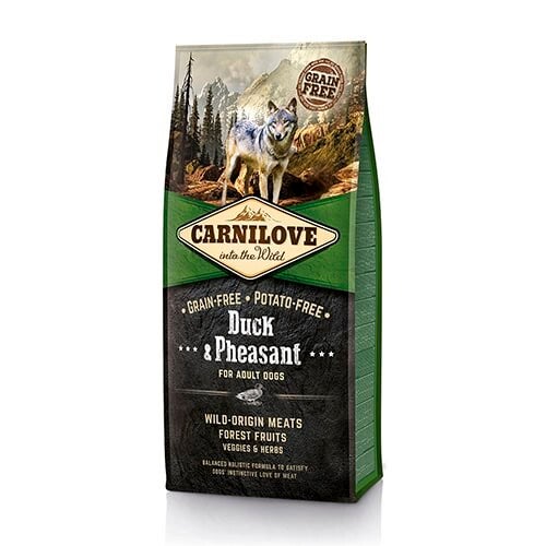 Eendenmeel (30%), fazantenmeel (22%), gele erwten (20%), kippenvet (met tocoferolen als conserveringsmiddelen, 8%), eend ontbeend (5%), kippenlever (3%), appels (3%), tapiocazetmeel (3%), zalmolie (2%), wortels (1%), lijnzaad (1%), kikkererwten (1%), gehydrolyseerde schalen van schaaldieren (een bron van glucosamine, 0,026%), kraakbeenextract (een bron van chondroïtine, 0,016%), biergist (een bron van mannan-oligosachariden, 0,015%), cichoreiwortel (een bron van fructo-oligosachariden, 0,01%), Yucca schidigera (0,01%), algen (0,01%), psyllium (0,01%), tijm (0,01%), rozemarijn (0,01%), oregano (0,01%), veenbessen (0,0008%), bosbessen (0,0008%), frambozen (0,0008%).